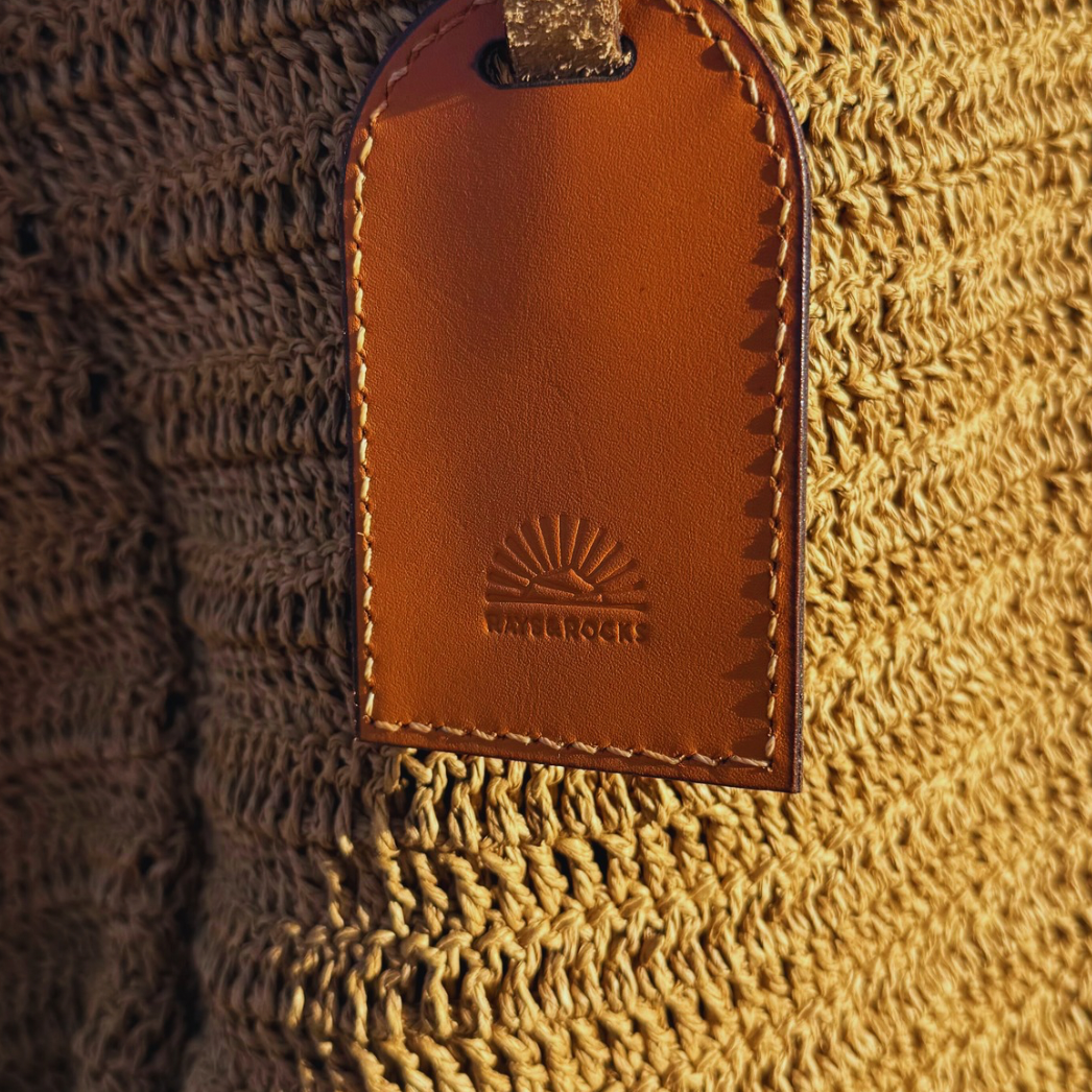 MATERIAL: Natural raffia fiber, woven by hand & Genuine leather details for a refined, durable finish.