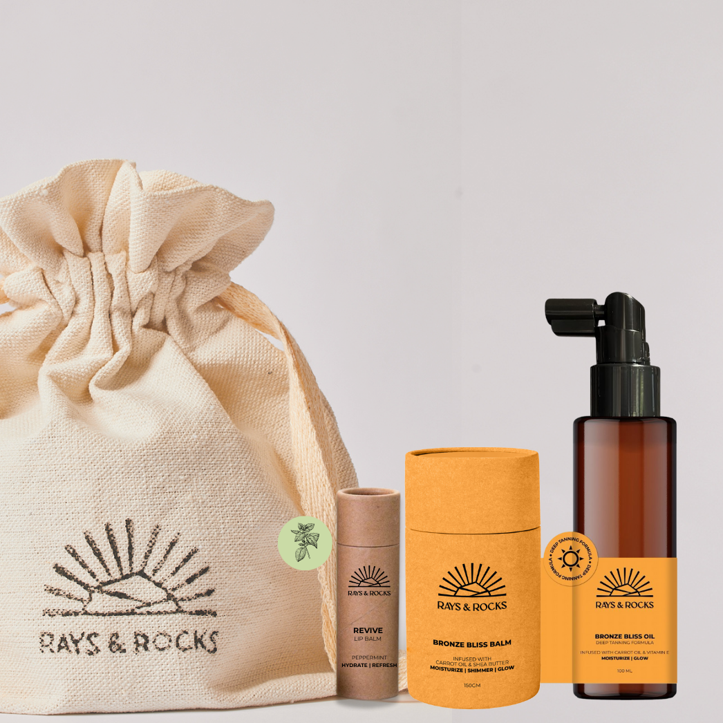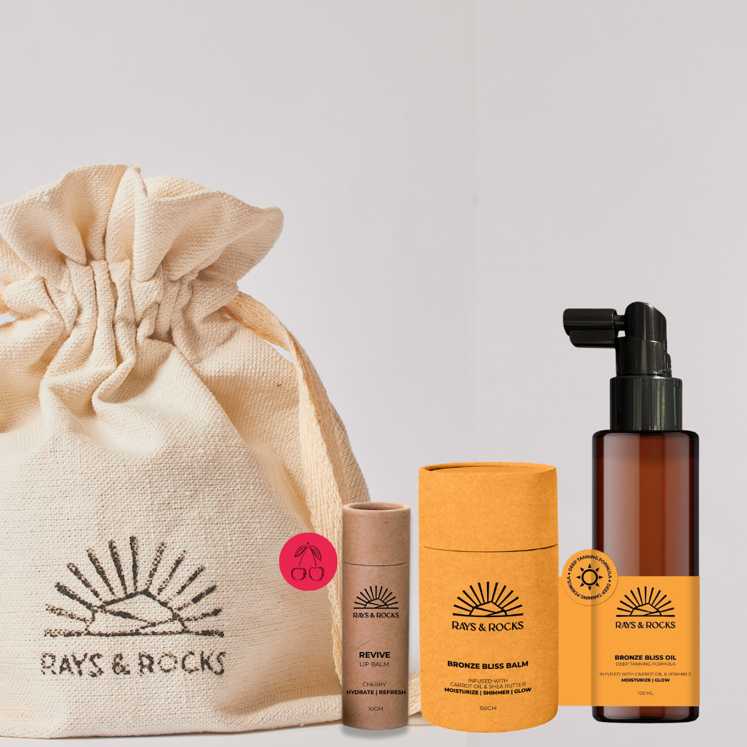 Tanning Adventure means Mix Together our Bronze Shimmer Balm with The Deep tanning oil formula with a Taste of Cherry or Peppermint !